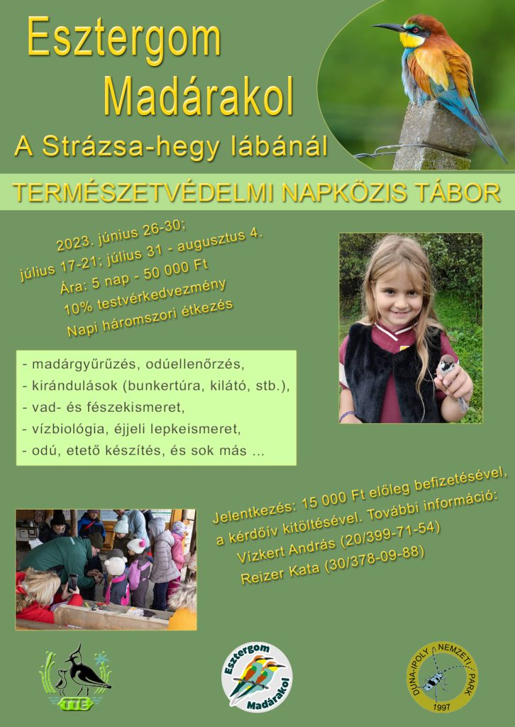 Egy egész hetet eltöltenétek a madarak megismerésével? A Tápió Természetvédelmi Egyesület 2023 nyarán napközis táborokat szervez gyerekeknek, 20 fős csoportokban, több turnusban. A táborok célja a területen található természeti értékek megismerése és védelme, mely egyre sürgetőbb a klímaváltozás miatt. A gyerekek a tábor ideje alatt többek között Európai Madármegfigyelő Napokon, erdőismereti és vízbiológiai foglalkozásokon, madárgyűrűzésen, éjjeli lepkelesen, madárodú ellenőrzéseken, vad- és fészekismereti órákon vehetnek részt, de vizes Exatlon, valamint kilátó- és bunkertúra is szerepel a programban!